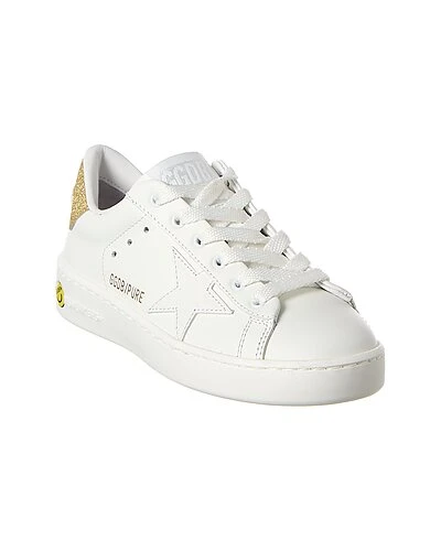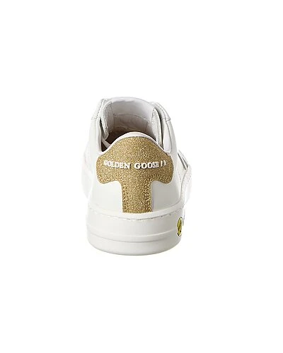 - Pure New Leather Sneaker in white leather with gold glitter accent