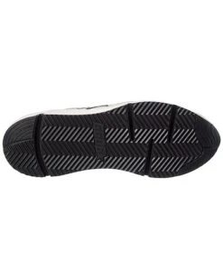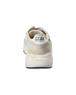 - Running Sole Mesh & Suede Sneaker in white mesh, suede and leather with distressed design, perforated detailing and logo printed laces