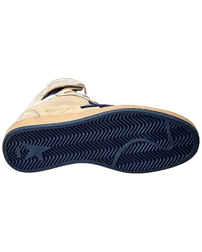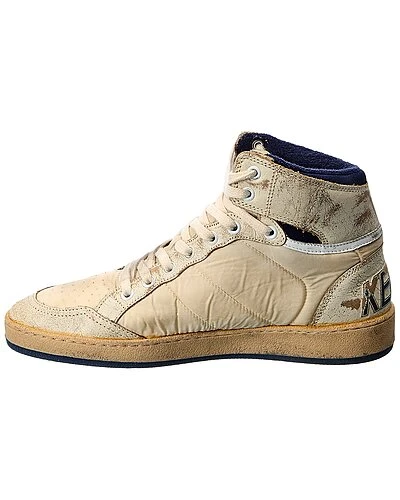 - Sky-Star Nylon & Leather Sneaker in white quilted nylon and leather with distressed design, blue suede star and blue terry cloth collar
