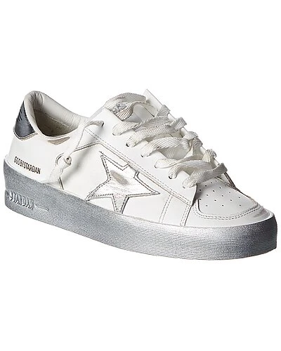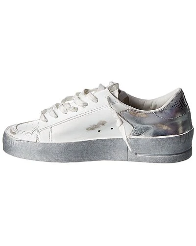 - Stardan Leather Sneaker in white and silver leather with perforated detailing