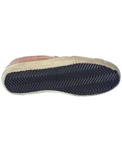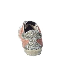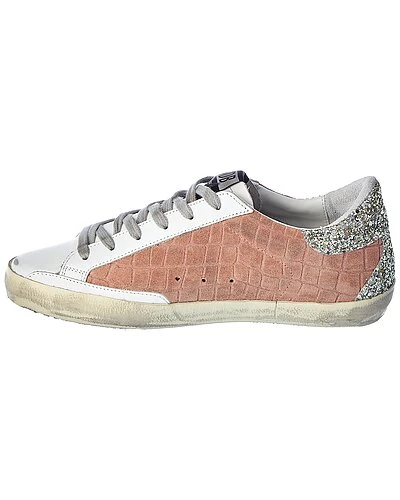- Superstar Croc-Embossed Suede & Glitter Sneaker in pink croc-embossed suede and silver glitter with distressed design