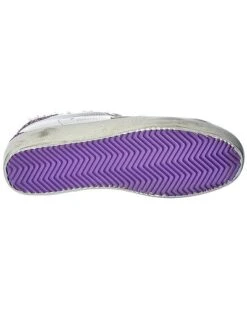 - Superstar Leather & Glitter Sneaker in white leather and pink glitter with distressed design, shearling trim and printed laces
