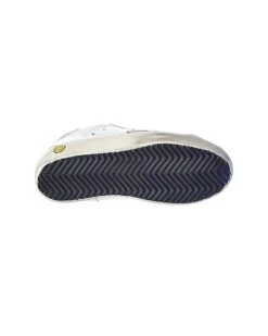 - Superstar Leather Sneaker in white leather and silver metallic textile with distressed design