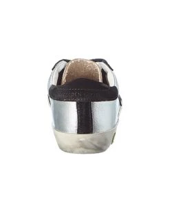 - Superstar Leather & Suede Sneaker in silver leather and black suede with distressed design