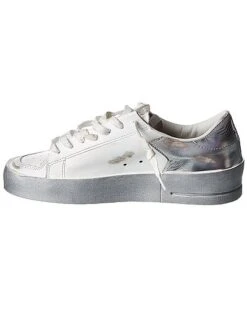- Superstar Leather & Suede Sneaker in white and beige leather and suede with distressed design and contrast laces