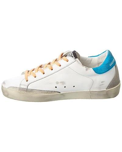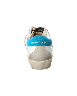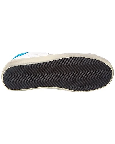 - Superstar Leather & Suede Sneaker in white and black leather and blue suede with distressed design