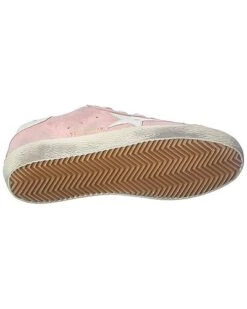 - Superstar Suede & Leather Sneaker in pink suede and white leather with distressed design and textured tongue