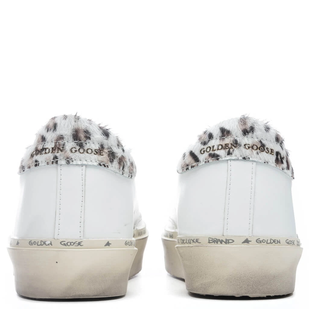 Italian footwear label Golden Goose’s Women’s Hi Star upgrades the traditional pair of sneakers with its leather upper along with its signature bold branding placed at the side. A distressed rubber platform sole is placed for durability, while additional branding is handwritten along the sides. A signature star appears at the side panel, while the leopard-printed heel tab and rubber outsole tie together the aesthetic.