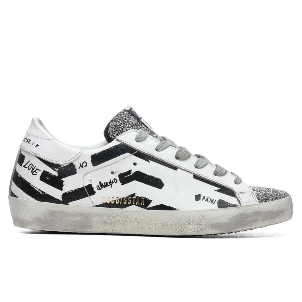The classic silhouette of the Super Star is designed with distressed details and patterns to provide a statement piece to any outfit. Premium calfskin leather constructs the upper while stitched and embossed motifs decorate the side panels. A rubber outsole protects the inner cushioning providing longing comfort.